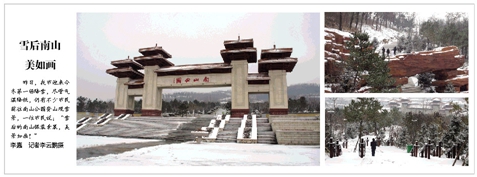 昨日,我市迎來今冬第一場降雪,盡管氣溫降低,仍有不少市民前往南山公園登山觀雪景,一位市民說:“雪后的南山銀裝素裹,美景如畫!” 李嘉 記者李云鵬攝