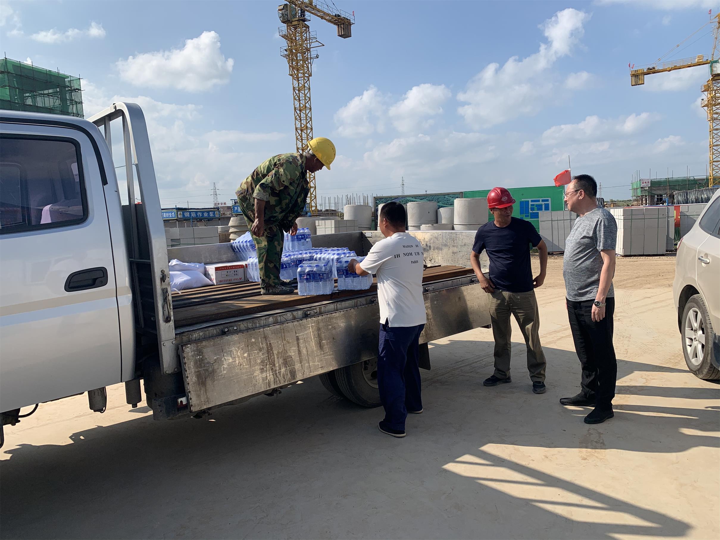 8月14日,華地集團(tuán)工會(huì)主席高虹長,行政人事部長王璇,一行5人,走訪了女兒河濱河路、污水廠、配水廠、大有文張線,管廊等在建項(xiàng)目,為三伏天奮戰(zhàn)在一線的員工們,送去了風(fēng)扇、藿香正氣水、風(fēng)油精、礦泉水、白糖等防暑降溫物品,工會(huì)主席高虹長現(xiàn)場詳細(xì)了解了員工們的生產(chǎn)生活,飲食衛(wèi)生和勞動(dòng)保護(hù)等各項(xiàng)情況,并要求各項(xiàng)目管理人員,做好暑天安全防護(hù),加強(qiáng)防暑降溫意識(shí)和措施,切實(shí)的為廣大員工創(chuàng)造良好的工作環(huán)境和生活環(huán)境。